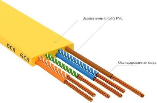 GCR Патч-корд PROF плоский прямой 2.0m, UTP медь кат.6, желтый, 30 AWG, ethernet high speed 10 Гбит/с, RJ45, T568B, GCR-52827