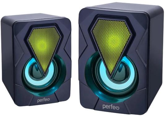 Perfeo колонки "SHINE", 2.0, мощность 2х3 Вт, USB, чёрн, Game Design, LED подсветка 7 цв