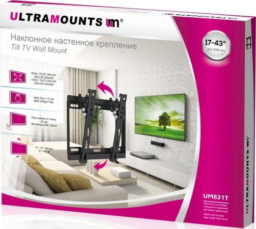 Кронштейн для телевизора Ultramounts UM 831TW белый 17"-43" макс.35кг настенный наклон