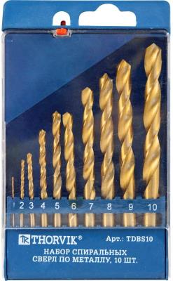 Thorvik TDBS10 Набор спиральных сверл по металлу HSS TiN в пластиковом кейсе, d1.0-10.0 мм, 10 предметов