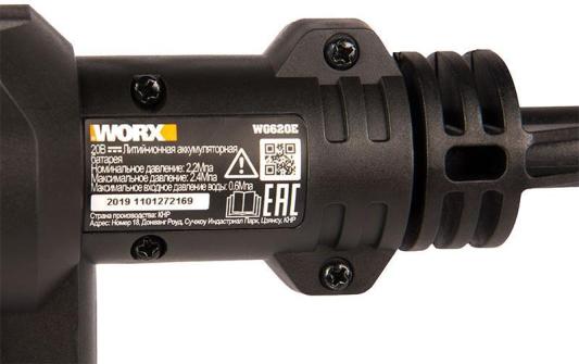 Прочие особенности и свойстваМойка высокого давления WORX WG620E 20V 22бар работает от универсальных литий-ионных аккумуляторных батарей WORX PowerShare ёмкостью 2 Ач, 4 Ач и 6 Ач. Эти батареи совместимы со всей аккумуляторной техникой WORX PowerShare: с линейками 20V, 40V и 80V.