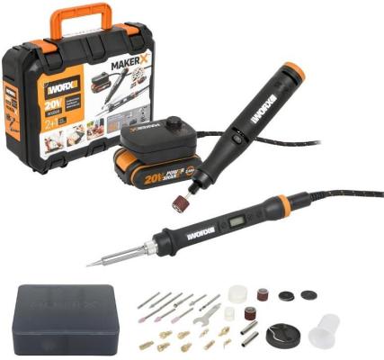 Комплект: Гравировальная машинка WX739.9 + Выжигатель WX744.9, 20В, 2Ач, адаптер, ЗУ, кейс