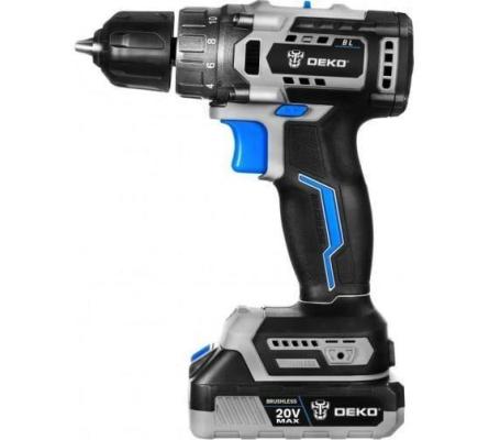 Прочие особенности и свойстваАккумуляторная бесщеточная дрель-шуруповерт DEKO Sharker 20V 063-4037 имеет бесщеточный двигатель, что обеспечивает эффективность и производительность.