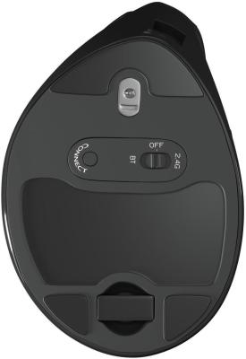 Мышку можно подключить к различным устройствам через USB донгл по радиосвязи или по Bluetooth. 990MW поддерживает работу Bluetooth с низким энергопотреблением - версии 5.0. Кроме того, мышка может запомнить до трёх подключенных девайсов: ПК, ноутбука, планшета и т.д. Переключение между устройствами осуществляется переключателем, расположенным под большим пальцем.