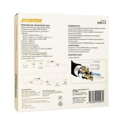 Кабель аудио-видео Digma HDMI 2.0 AOC HDMI (m)/HDMI (m) 20м. Позолоченные контакты черный (BHP AOC 2.0-20)