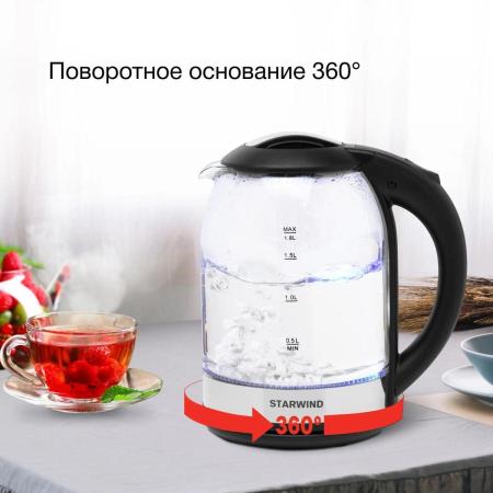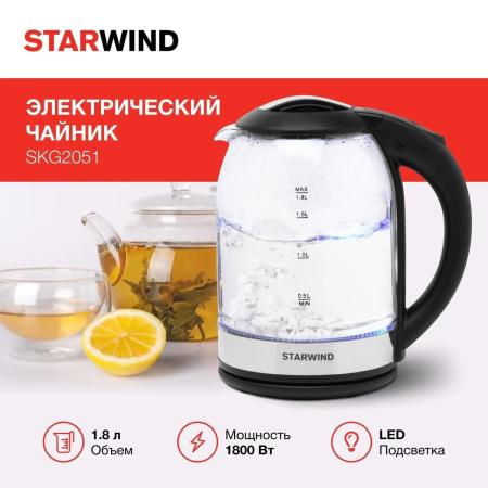 Чайник электрический Starwind SKG2051 1.8л. 1800Вт черный/серебристый (корпус: стекло)