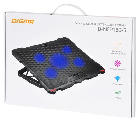 ОписаниеПодставка для ноутбука Digma D-NCP180-5 подойдет для ноутбука с диагональю экрана не более 18 дюймов. Модель имеет четыре вентилятора диаметром 79 мм, и один вентилятор диаметром 150 мм, которые обеспечивают оптимальное охлаждение. Скорость вращения равна 1500 оборотов в минуту.