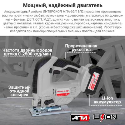 Лобзик аккумуляторный МПА-65/18л2 630.0.0.70 Интерскол – мощный и надежный инструмент для любителей DIY и профессионалов.