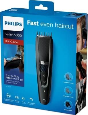 Моющаяся машинка для стрижки волос, series 5000, 28 установок длины (0,5–28 мм), Технология Trim-n-Flow PRO, 90 минут работы после 1 часа зарядки