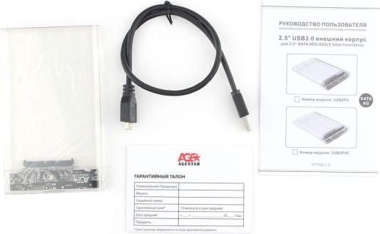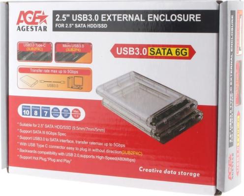 USB 3.0 Внешний корпус 2.5 SATAIII HDD/SSD AgeStar 3UB2P4 (TRANSPARENCY) пластик, прозрачный (50) (672691)