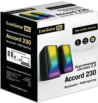 Акустическая система 2.0 ExeGate Accord 230 (питание USB,Bluetooth, 2х3Вт (6Вт RMS), 60-20000Гц, цвет черный, RGB подсветка, Color Box)