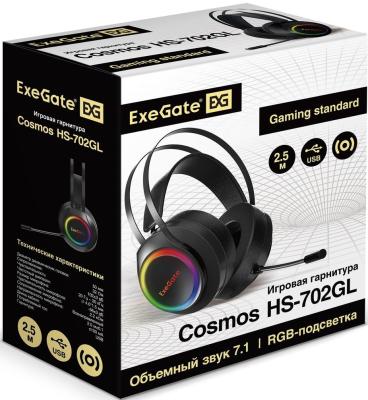 Игровая гарнитура ExeGate Cosmos HS-702GL (объемный звук 7.1, длина кабеля 2.5м, RGB подсветка, USB интерфейс, Color Box)