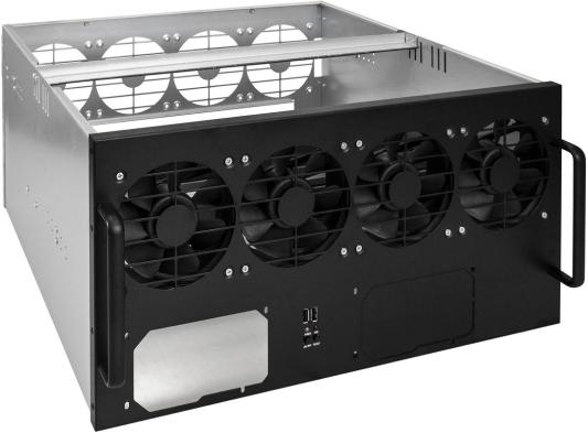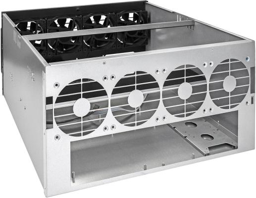 Корпус для майнинга ExeGate Pro 8-430 <без БП, 2*USB, 4*fan 120мм, места под: 8 видеокарт, 2 БП>