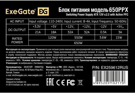 Ищете надежный блок питания для своего компьютера? Этот 650-ваттный блок питания от Exegate - именно то, что вам нужно. Он обеспечит стабильную работу даже самых требовательных систем.