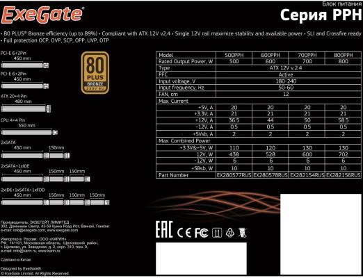 Прочие особенности и свойстваКПД до 89%, подтвержденное сертификатами 80 Plus Bronze. Поддержка международных стандартов питания ATX 12V V2.4 и EPS 12V. Активный PFC> 99%. Одиночная +12V линия обеспечивает максимальную стабильность при любых уровнях нагрузки. Блок питания для промышленного использования.