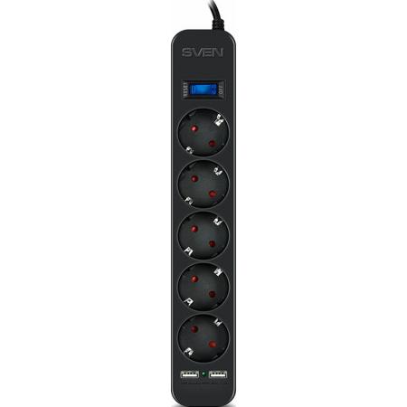 Дополнительно *Сетевой фильтр SVEN SF-05LU в черном корпусе из негорючего пластика позволяет одновременно подключать к одной розетке до 7 устройств. Для этого он имеет в своей конструкции 5 евророзеток и 2 USB-разъема. Одновременная нагрузка на фильтр может достигать 2200 Вт. Встроенный термопредохранитель сработает, если этот показатель был превышен. Также безопасности использования служат защитные шторки на розетках.