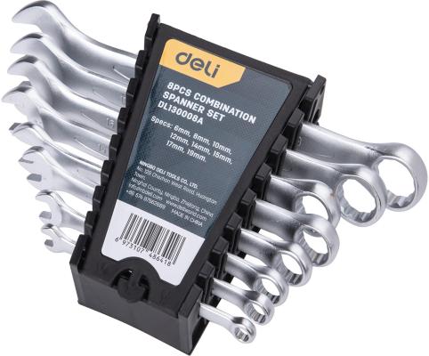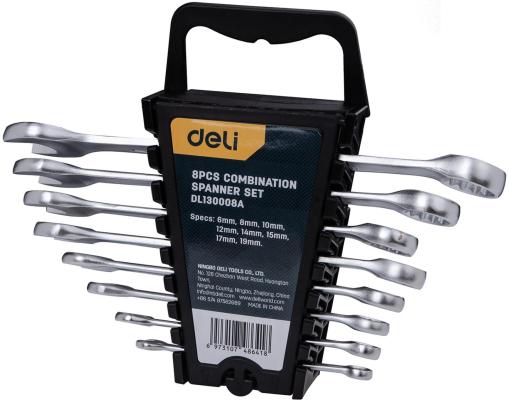 Набор комбинированных гаечных ключей 8 шт Deli DL130008A Спецификация: 6 мм, 8 мм, 10 мм, 12 мм, 14 мм, 15 мм, 17 мм, 19 мм. Матовая хромированная поверхность. Пластиковая упаковка.