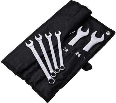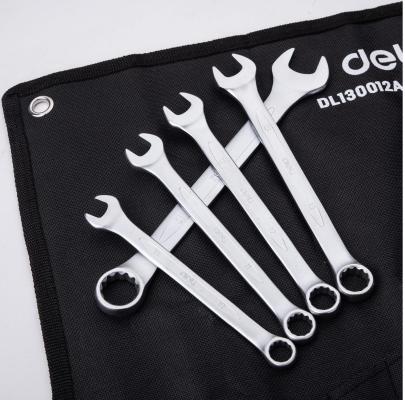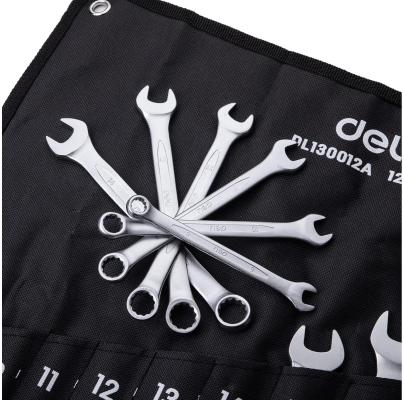 Набор комбинированных гаечных ключей 12 шт Deli DL130012A Спецификация: 6 мм, 8 мм, 10 мм, 11 мм, 12 мм, 13 мм, 14 мм, 15 мм, 17 мм, 19 мм, 22 мм, 24 мм. Матовая хромированная поверхность. Тканевая упаковка.