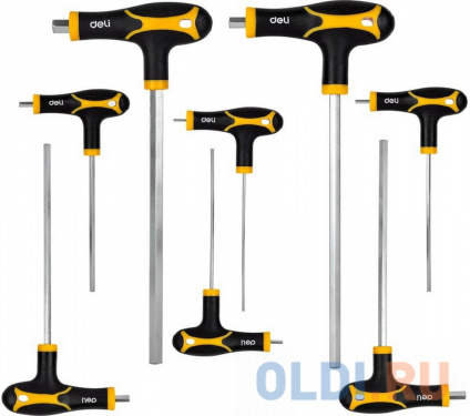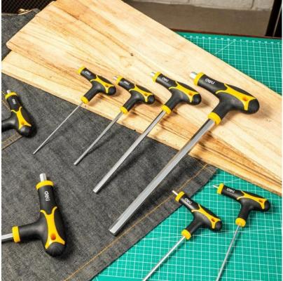 Набор шестигранных ключей Deli DL233108 8 шт. Материал: CR-V. Спецификация: 2x75 мм/2,5x75 мм/3x100 мм/4x100 мм/5x150 мм/6x150 мм/8x200 мм/10x200 мм. Удобная рукоять.