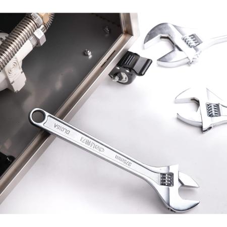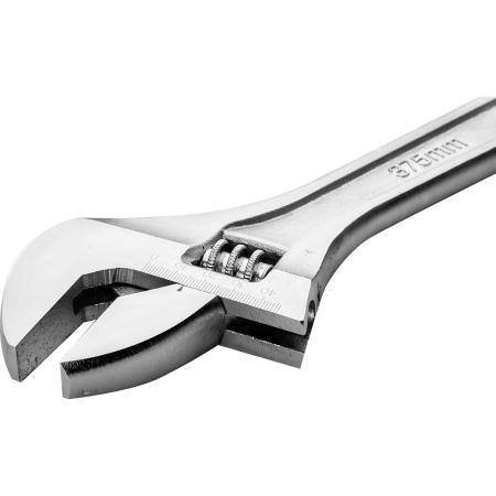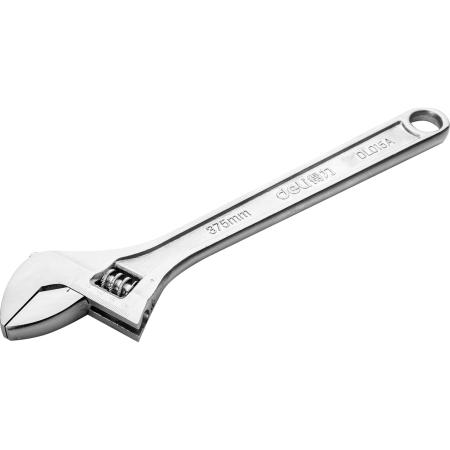 Разводной ключ Deli DL015A 15" Длина: 350 мм. Регулируемый размер зажима: 0-46 мм. Кованая специальная инструментальная сталь. Хромированная отделка.