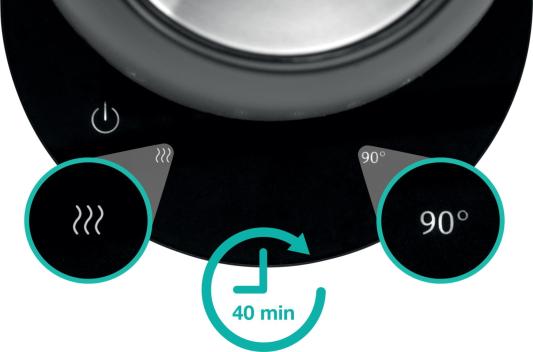 Благодаря мощности 2200 Вт чайник быстро нагревает воду до нужной температуры, а сенсорное управление позволяет удобно регулировать температуру и время нагрева.