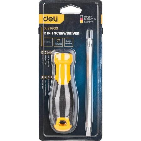 Двухсторонняя отвертка Deli DL626001 PH2+SL6x100мм Спецификация продукта.: 6/PH2x100мм. Материал хвостовика: Cr-V. Длина: 210 мм. Длина: 100 мм. Диаметр хвостовика: 6,3 мм.