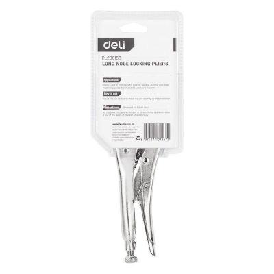 Зажимные клещи удлиненные Deli DL20015B 9" Рабочий ход 70 мм. Материал высокоуглеродистая сталь CrMo. Регулировочный винт. Быстросъёмная ручка.
