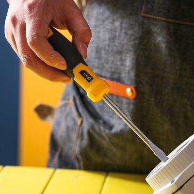 Шлицевая отвертка Deli DL6361001 6х100мм Материал: CR-V. Двухкомпонентная ручка. Хромированная.