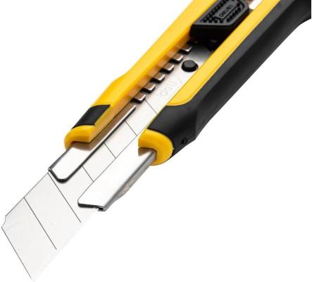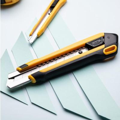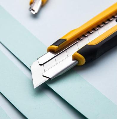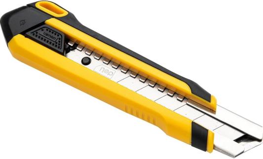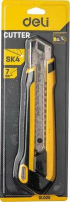 Технический нож Deli DL025 25мм SK4. 2-ступенчатое лезвие. Ударопрочный и обрезиненный корпус. Кнопка автоматической блокировки.