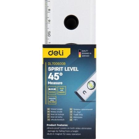 Строительный уровень Deli DL700600B 600мм Алюминиевый сплав. Мягкая резина на обоих концах. Магнит для удобства эксплуатации.