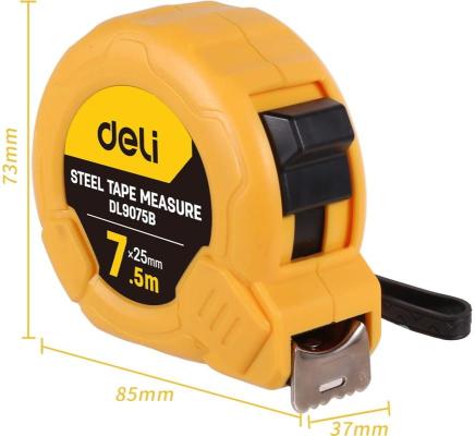 ОписаниеРулетка DELI DL9075B 98281 предназначена для бытового и полупрофессионального использования. Рулетка обладает прочным корпусом из ABS-пластика, клипсой для крепления на ремне и ремешком для ношения на запястье. Инструмент прослужит долго за счёт стальной ленты с белой, матовой краской, устойчивой к истиранию. Рулетка оснащена металлическим крючком с автоматической коррекцией нулевой точки и металлической возвратной пружиной для быстрого свёртывания ленты. Длина и ширина ленты 7,5х25 мм