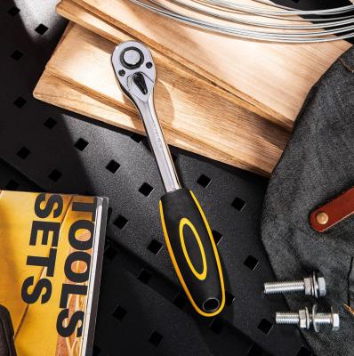 Ключ-трещотка Deli DL2521 1/2" Размер: 254 мм. Двухкомпонентная трещотка, 45 T (зубья), шестерня Cr-Mo, быстросъемная.