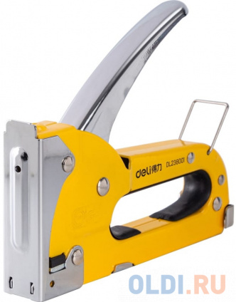 Прочие особенности и свойстваМебельный степлер DELI DL238001 98415 используется во время столярных работ для закрепления материала из гипсокартона, пластика, ДСП, текстиля, кожи и т.п. к другим поверхностям. Степлер обладает функцией регулировки силы удара, что позволяет оптимально работать с широким спектром материалов. Подходит для работы со скобами типов D (53/А). Степлер имеет прочный металлический корпус, что обеспечивает долговечность и надежность.