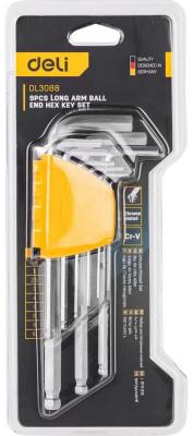 Набор шестигранных ключей с шаром Deli DL3088 9 шт. Размер: 1,5-10 мм. Материал: Cr-V. Шаровой конец. Хромированный.
