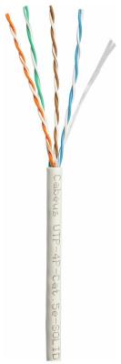 Cabeus UTP-4P-Cat.5e-SOLID-GY Кабель витая пара UTP (U/UTP), категория 5e, 4 пары (24 AWG), одножильный, серый (305 м), системная гарантия 25 лет.