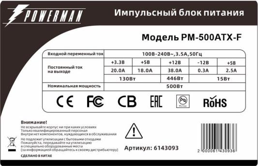 Powerman Power Supply 500W PM-500ATX-F (carton box)