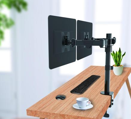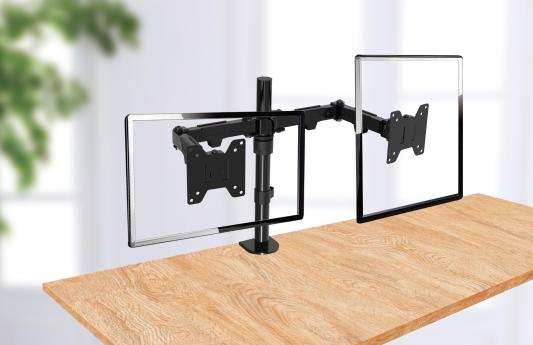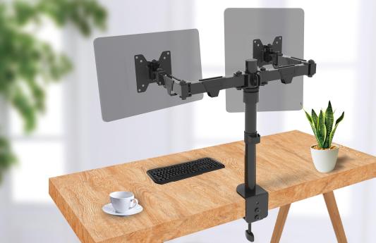 ДополнительноНастольный наклонно-поворотный кронштейн для двух мониторов с диагональю до 32 дюймов включительно с регулировкой по высоте.