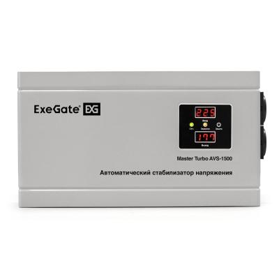 Стабилизатор напряжения ExeGate Master Turbo AVS-1500 (1500ВА, 100-265В, цифр. индикация вход/вых. напряжения, 220В±8%, КПД 98%, 5 уровней защиты, задержка, усиленный метал.корпус, евророзетка, RTL)