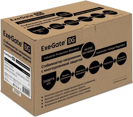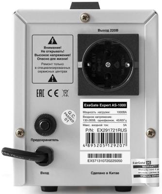 Стабилизатор напряжения ExeGate Expert AS-1000 (1000ВА, вход 140...260В, двойная цифр. индикация вход/вых. напряжения, выход 220В±8%, КПД 98%, 5 уровней защиты, задержка, метал. корпус, евророзетка, RTL)