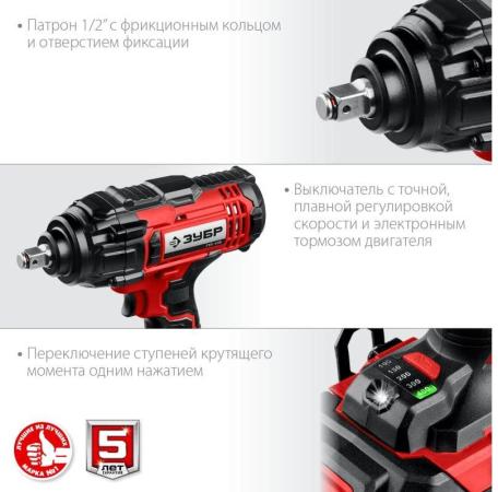 Прочие особенности и свойстваУдарный гайковерт ЗУБР ГУЛ-410-41 предназначен для закручивания, откручивания болтов и гаек (при установке соответствующей оснастки).