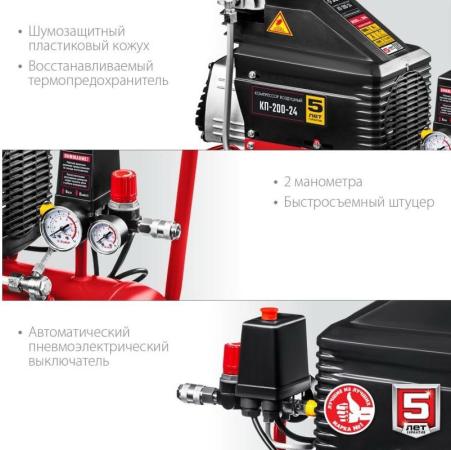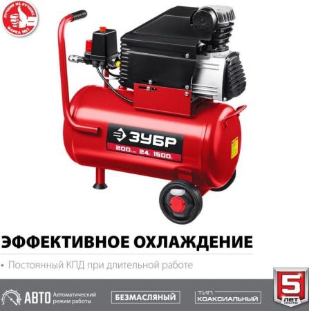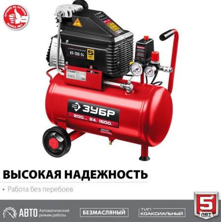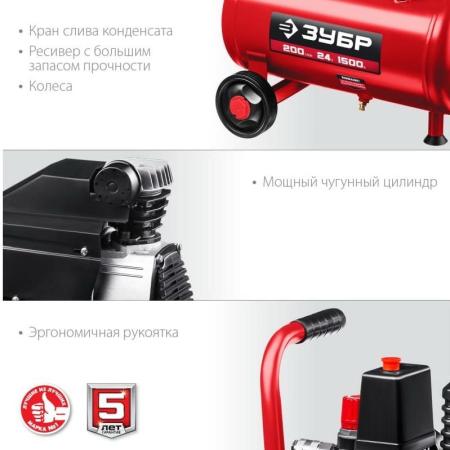 Компрессор воздушный безмасляный с набором аксессуаров, 200 л/мин, 24 л, 1500 Вт, ЗУБР