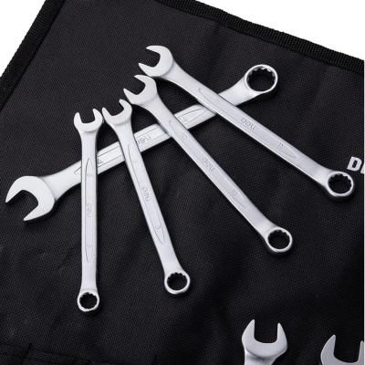 Набор комбинированных гаечных ключей 14 шт Deli DL130014A Спецификация: 6,7,8,9,10,11,12,13,14,15,17,19,22,24 мм. Матовая хромированная поверхность. Тканевая упаковка.
