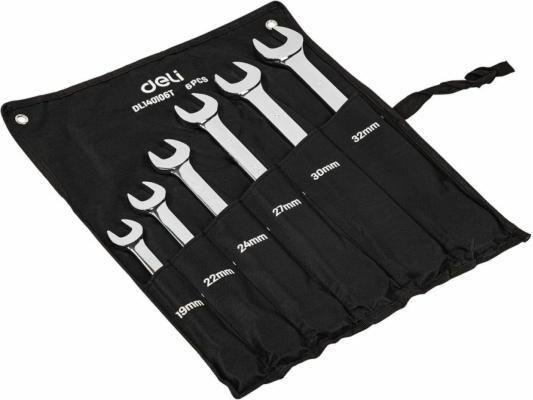 Набор комбинированных ключей с трещоткой 6 шт Deli DL140106T Спецификация: 19,22,24,27,30,32мм. Сталь 40 Cr. Трещотка 50BV30 72Т. Чехол из ткани Oxford