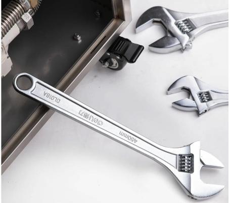 Разводной ключ Deli DL018A 18" Длина: 450 мм. Регулируемый размер зажима: 0-55 мм. Кованая специальная инструментальная сталь. Хромированная отделка.