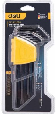 Набор шестигранных ключей TORX удлиненных Deli DL234209H 9 шт Материал CR-V. Спецификация: T10,T15,T20,T25,T27,T30,T40,T45,T50, пластиковый держатель