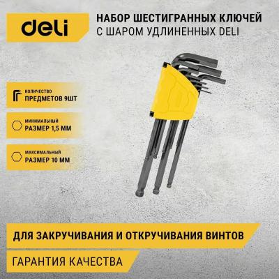 Набор шестигранных ключей сверхдлинных Deli DL3089 9шт Размер: 1,5-10 мм. Материал: Cr-V