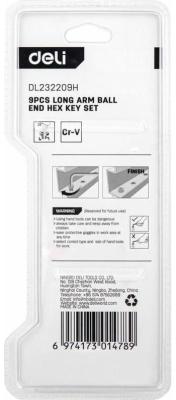 Набор шестигранных ключей с шаром удлиненных Deli DL232209H 9 шт Материал CR-V. Спецификация: 1,5,2,2,5,3,4,5,6,8,10мм, пластиковый держатель