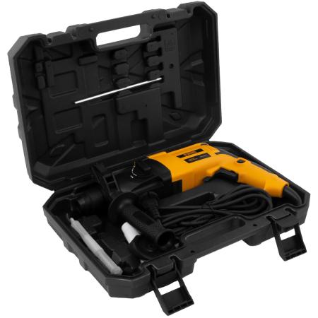 Продуманное хранение и транспортировка — перфоратор с набором оснастки поставляется в надежном пластиковом кейсе.