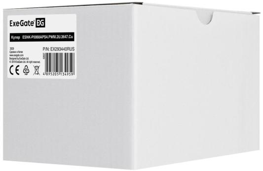 Кулер ExeGate ESNK-P0068APS4.PWM.2U.3647.Cu (Al+Cu, 2U, 3 тепл. трубки, LGA3647, TDP 205W, Fan 80mm, PWM, 2100-6800RPM, 2 ball bearing, 4pin, 52db, 410г, на винтах, с термопастой, Retail box)