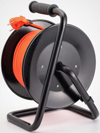 На торце ST-PSR4.30/G-20 расположен держатель для вилки, а на верхней части силового удлинителя находится удобная ручка. Катушка при надобности фиксируется на эргономичной и устойчивой подставке. Она облегчает разматывание и сматывание удлинителя.